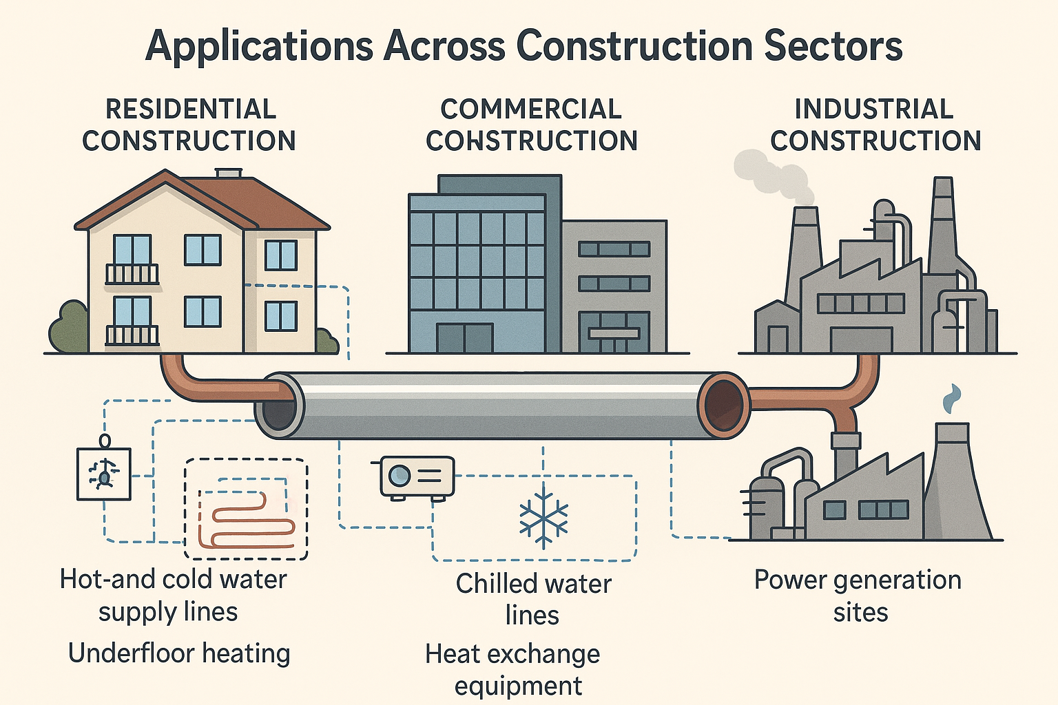 Sen monipuolisuus hopeaa copper tubes tekee niistä sopivia monenlaiseen käyttöön rakennussovelluksia . sisään asuinrakentaminen , niitä käytetään yleisesti kuuman ja kylmän veden syöttölinjat , lämmitysjärjestelmät , ja lattialämmitysverkot . Niiden kestävyys auttaa vähentämään vuotojen ja korroosion aiheuttamien vikojen riskiä, mikä on erityisen tärkeää monikerroksiset asuinrakennukset .