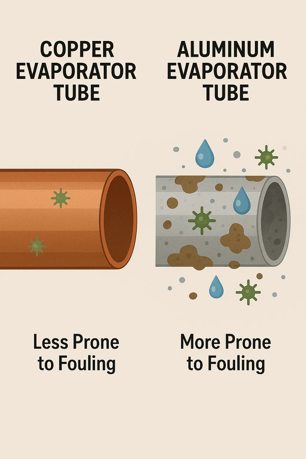 Kupari sillä on luonnollisia antimikrobisia ominaisuuksia, jotka auttavat estämään bakteerien, sienten ja levien kasvua sen pinnalla. Tämä likaantumisenkestävyys pitää kuparihöyrystimen putket puhtaampina ja tehokkaampana ajan myötä, mikä vähentää puhdistus- ja huoltotiheyttä.