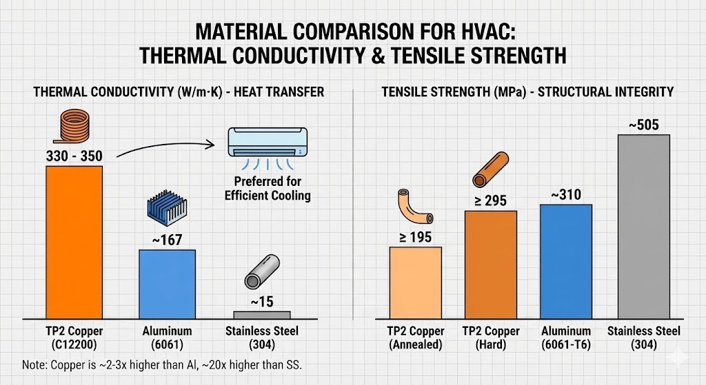 Olipa käyttävät ilmastointilaitteet, jotka pitävät kodimme viihtyisinä, vesijohto, joka tulee turvallista vettä, tai seuraavan sukupolven sähköajoneuvojen jäähdytysjärjestelmät, TP2 on edelleen nykyaikaisen lämpö- ja nesteenhallinnan perusta. Kun valitset materiaalia korkeapaineisiin, korkeisiin lämpötiloihin tai korkean hyötysuhteen sovelluksiin, TP2 (C12200) on todistettu alan vertailukohta.