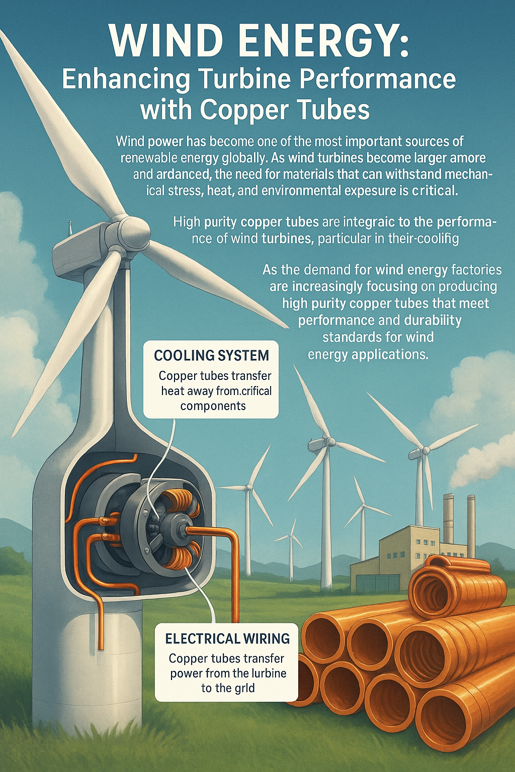 Tuulivoiman kysynnän kasvaessa kupariputkitehtaita keskittyvät yhä enemmän tuotantoon korkean puhtauden kupariputket jotka täyttävät tuulienergiasovelluksissa vaadittavat suorituskyky- ja kestävyysstjaardit.